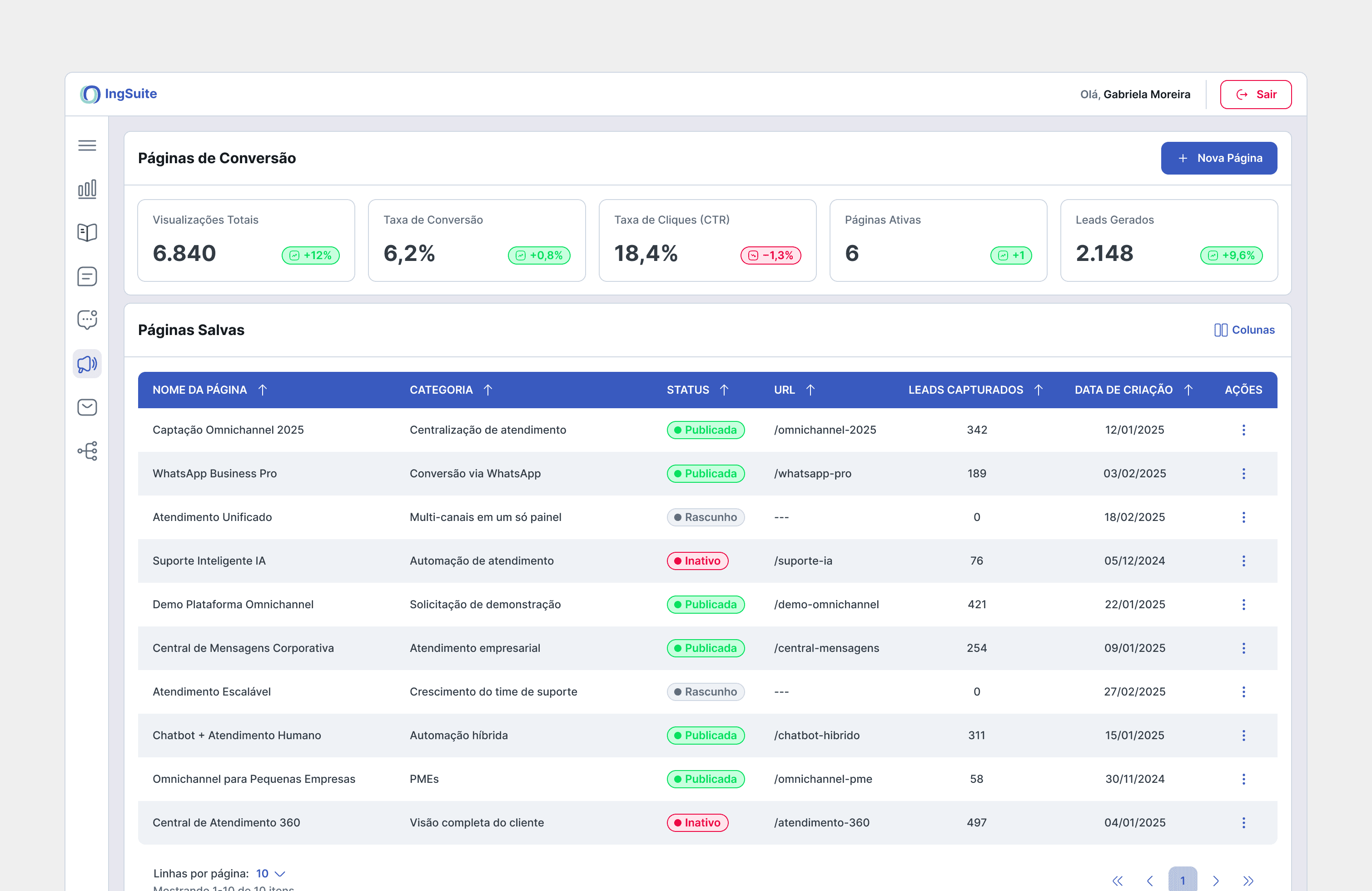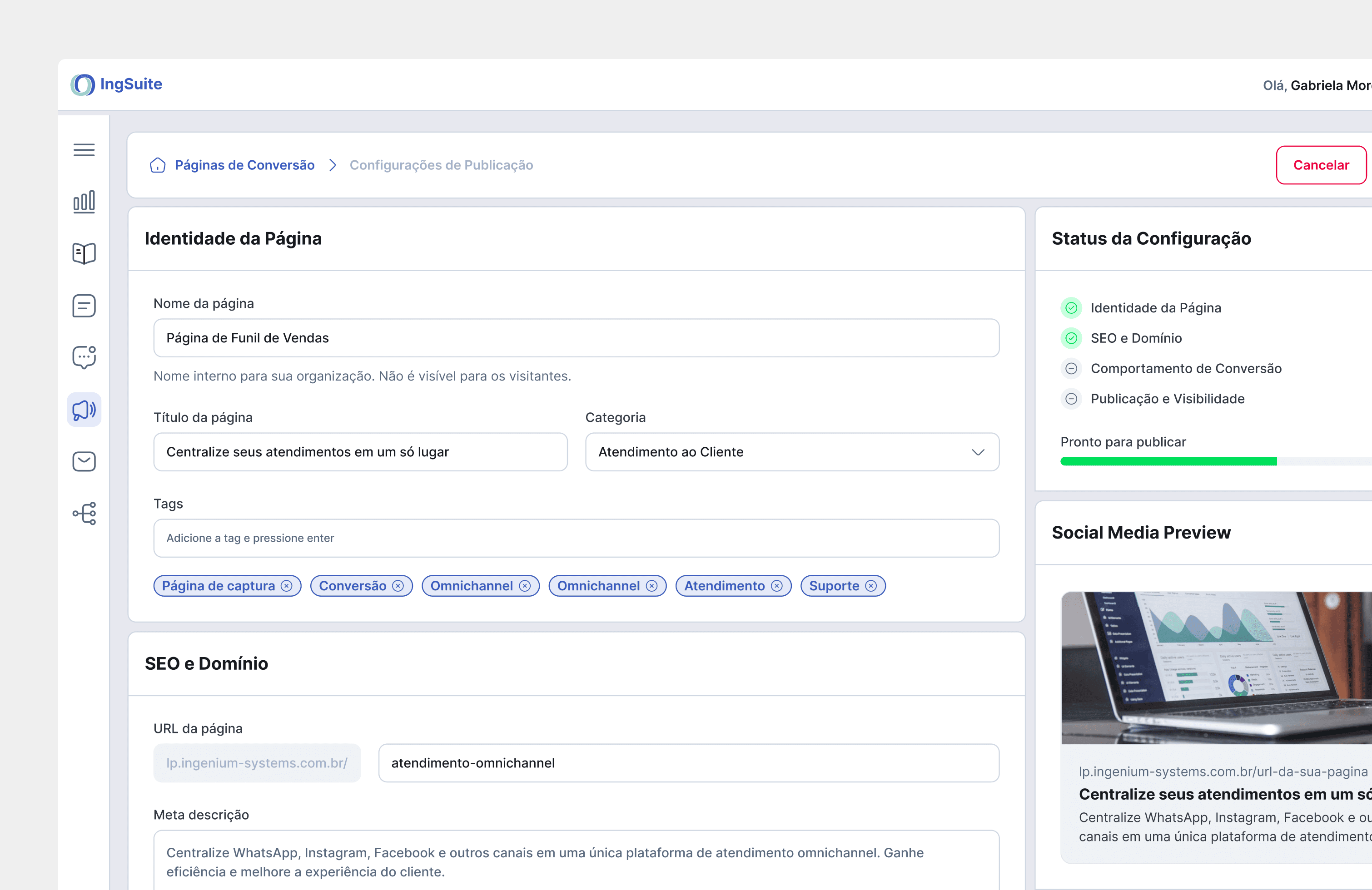 Risco de Abandono: O usuário poderia criar a página, mas não publicar ou não usar o lead no dia a dia.