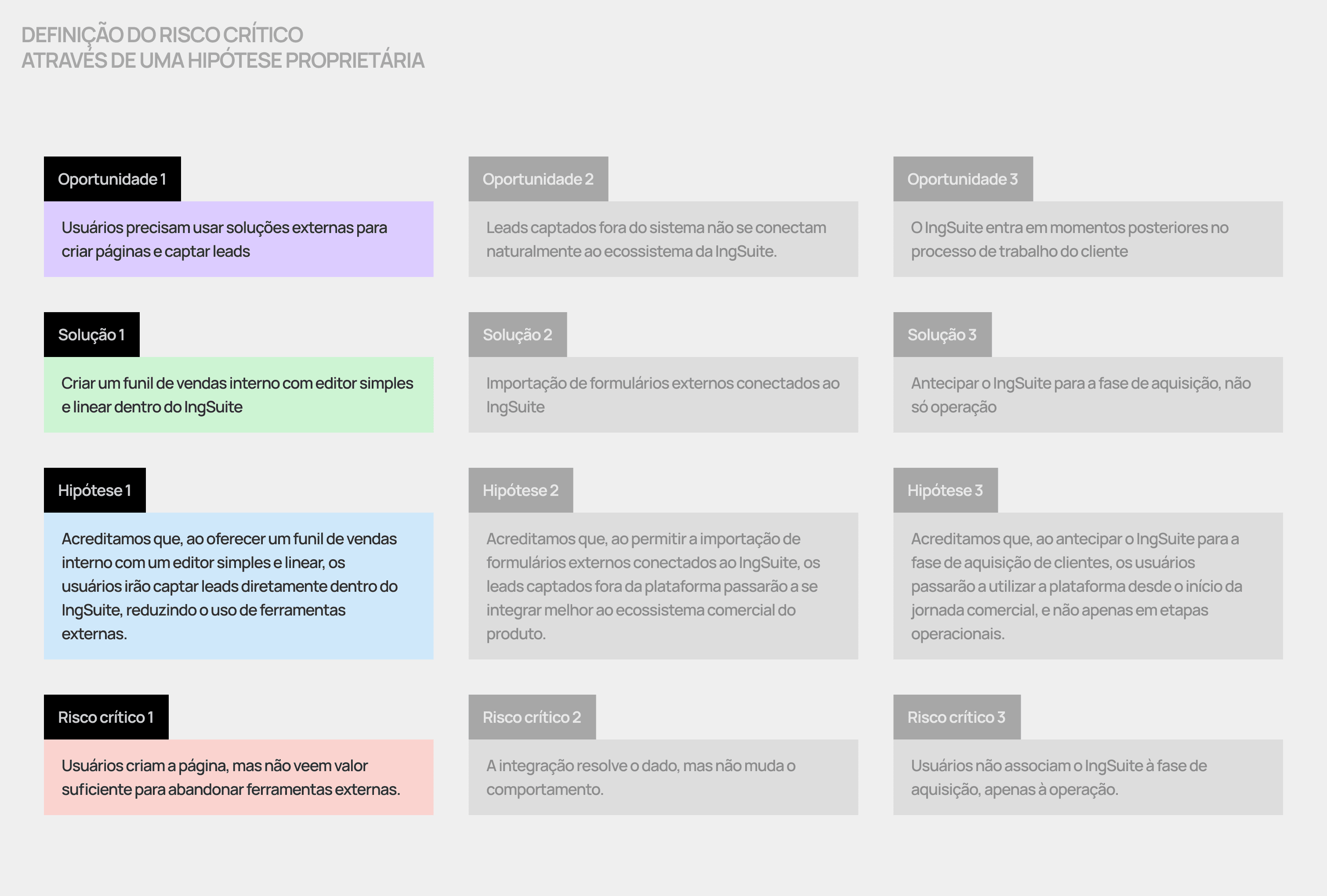 A hipótese era clara: clientes estabelecidos na empresa trocariam ferramentas externas complexas por uma solução interna gradualmente, desde que ela fosse simples, linear e conectasse as informações ao time.